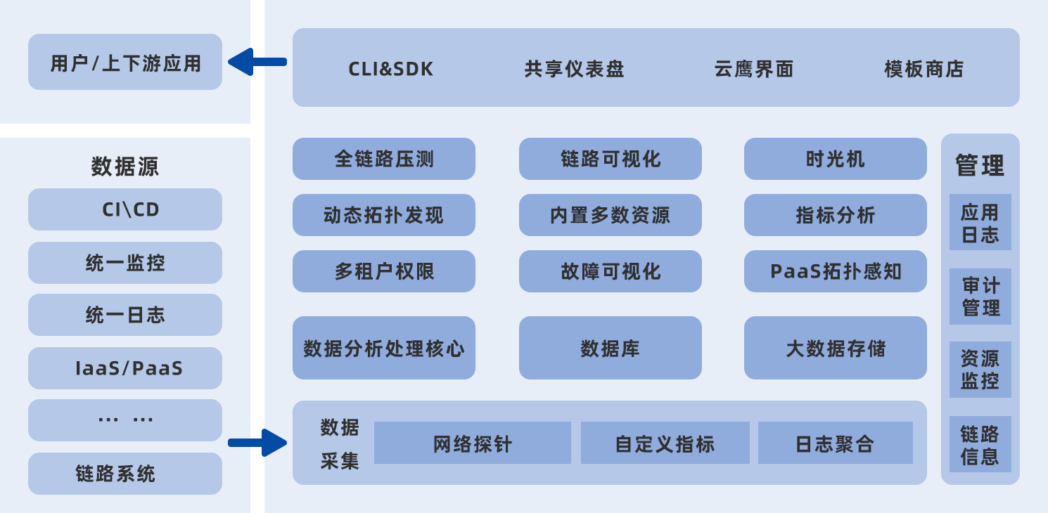 云鷹平臺(tái)是光大科技打造的面向云原生的全鏈路可觀(guān)察性平臺(tái)。支持?jǐn)?shù)據(jù)中心可視化、拓?fù)鋭?dòng)態(tài)發(fā)現(xiàn)、調(diào)用鏈路與物聯(lián)網(wǎng)追蹤、監(jiān)控日志系統(tǒng)對(duì)接等功能;提供全鏈路可視化、指標(biāo)分析、異常告警、全鏈路壓測(cè)、輕量混沌工程、時(shí)光機(jī)等服務(wù)。平臺(tái)旨在為開(kāi)發(fā)運(yùn)維人員全面掌握系統(tǒng)的工作原理、快速發(fā)現(xiàn)與分析業(yè)務(wù)應(yīng)用的故障與性能瓶頸,提升開(kāi)發(fā)效率和服務(wù)穩(wěn)定性提供強(qiáng)大助力。