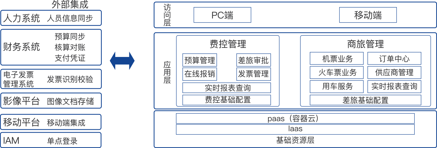 智能費控平臺解決方案是面向企業商旅、費控業務打造一站式的服務解決方案,解決傳統費控系統報銷操作繁瑣、差旅與費控流程不連通、移動應用水平低、智能化程度低等諸多不足,滿足不同類型企業的差旅、費控全流程信息化管理與服務需求,其核心價值是提升財務報銷系統的智能化和便捷性,同時加強財務費用精細化管控能力。